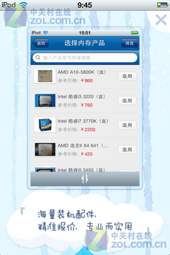 2、挑选硬件:在app的硬件库中选择您喜欢的CPU、显卡、内存、硬盘等。
