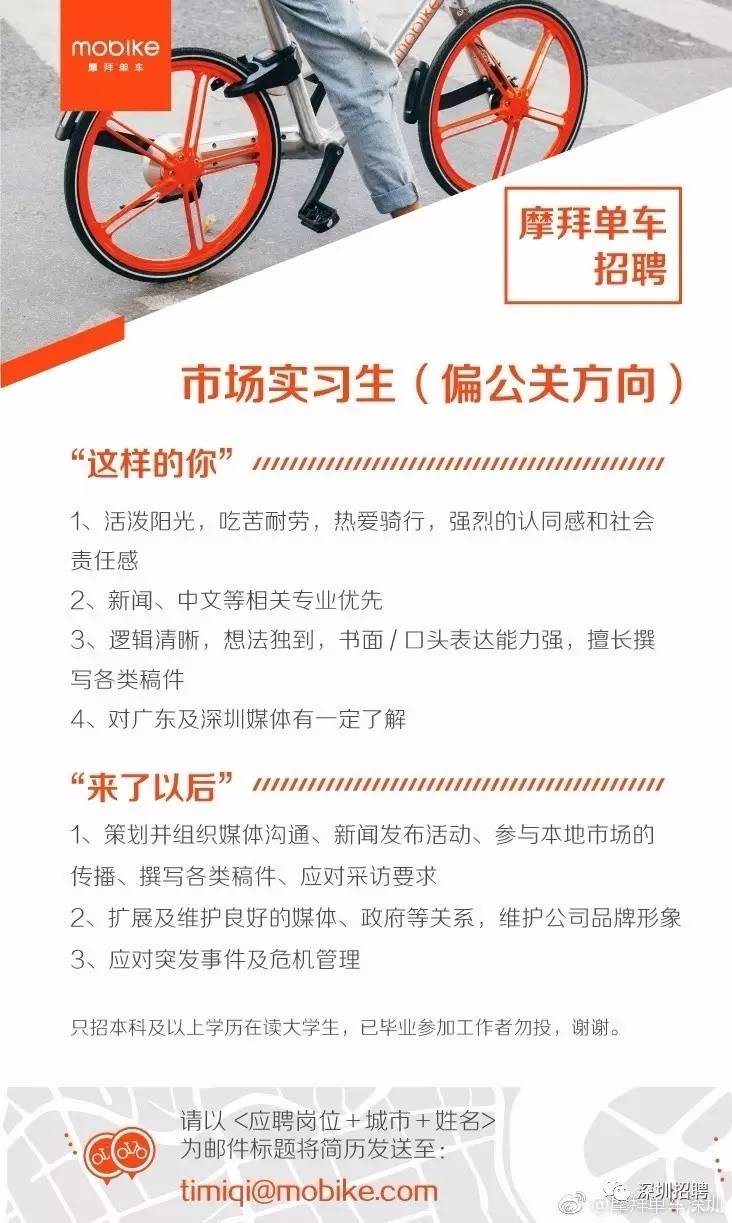 2、在摩拜单车官方网站或各大招聘网站搜索并申请相关职位;