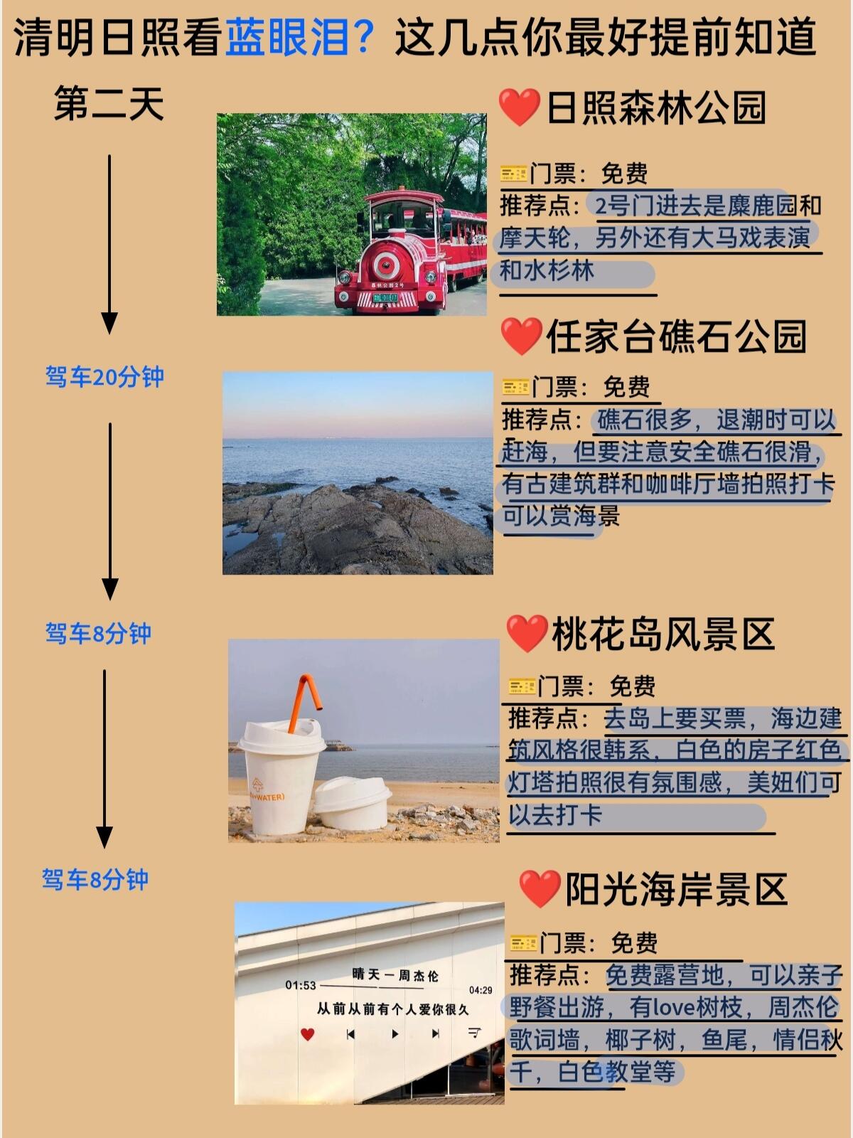 确定旅行天数:根据您的喜好和时间安排,选择适合的旅行天数,通常3-5天可以充分体验日照的主要景点。