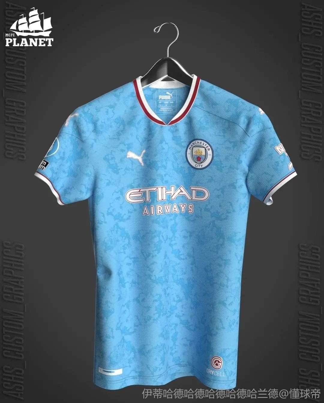 曼城最新球衣以经典蓝色为主色调,象征着曼城的坚韧与毅力,现代简约风格的外观设计,给人一种清爽、干练的感觉,领口采用独特的剪裁设计,既舒适又时尚;袖口巧妙地融入球队标志性元素,使得整款球衣更具辨识度。