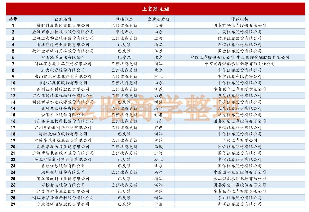 IPO企业排队情况概览