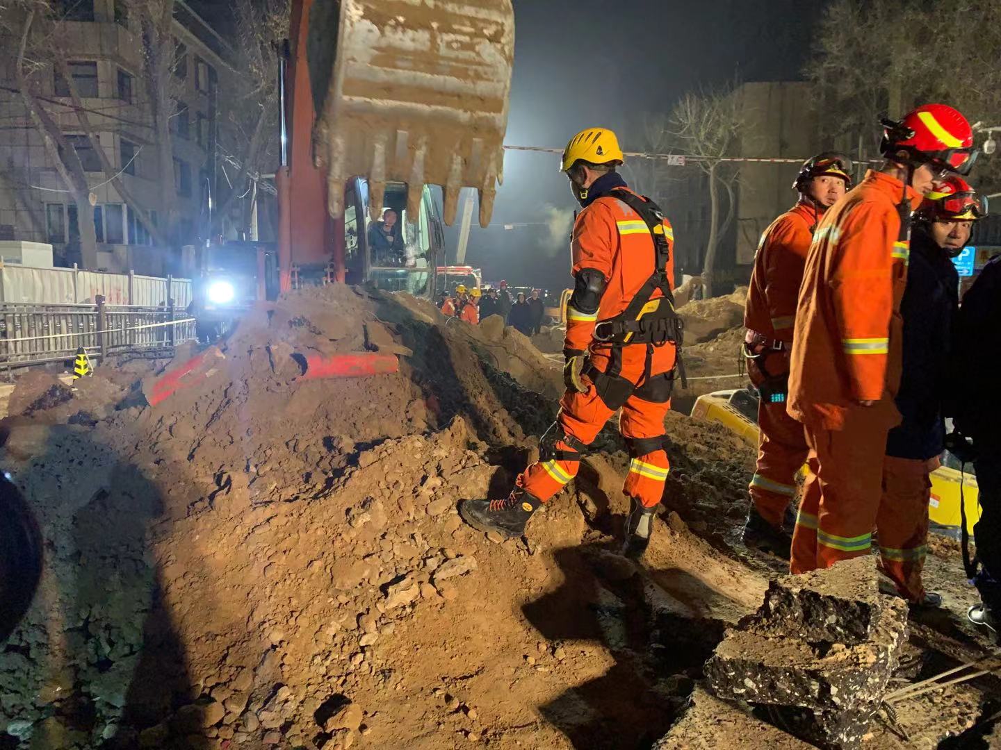 2、抢险排险:为了防止次生灾害,救援人员正在现场进行清理和加固工作,使用挖掘机、铲车等重型机械进行作业,他们还设置了警戒线,确保现场安全,防止无关人员进入危险区域。